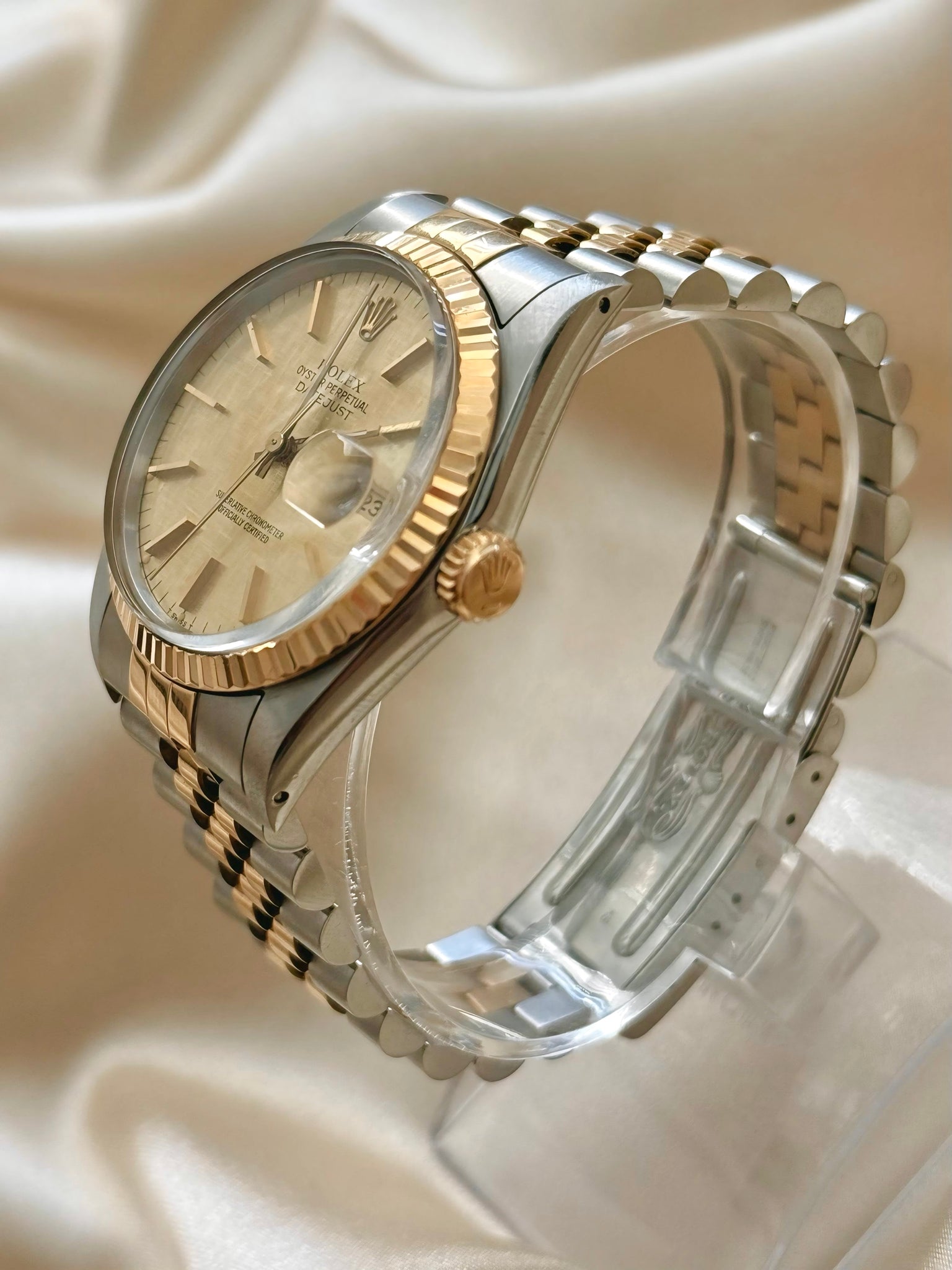 Authentic Rolex Datejust 36mm Champagne Linen Dial Unisex Watch 16013