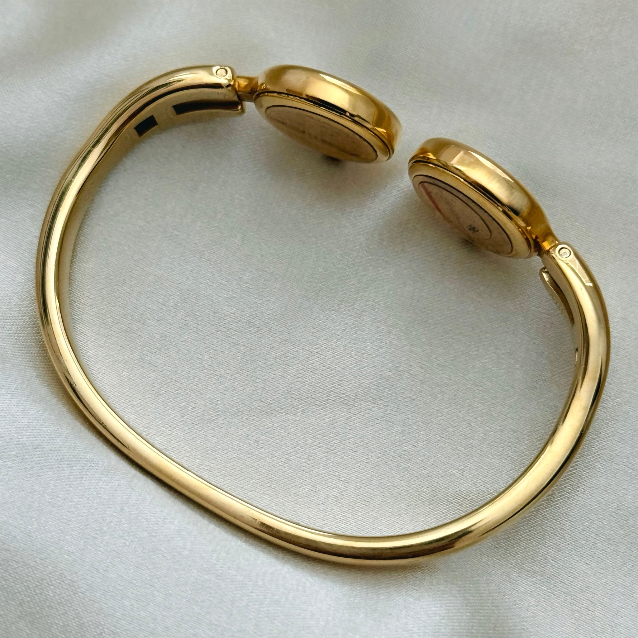 An extraordinary find: the Fendi 1925 Roman Coin cuff watch, distinguished by its exceptional rarity and adorned with 18k gold plating. With original movement and new battery installed.